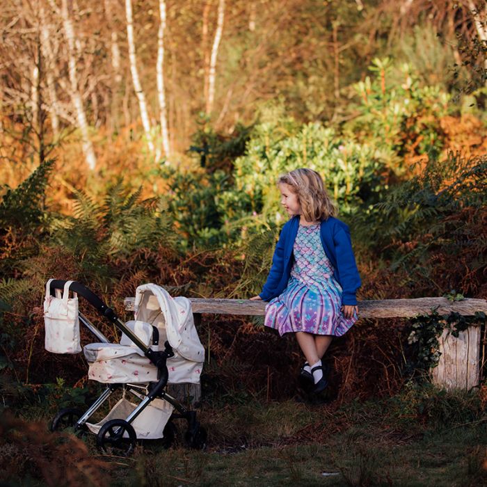 Each Roma dolls pram comes complete with a coordinating bag which attaches to the handle, removable apron and shopping basket.