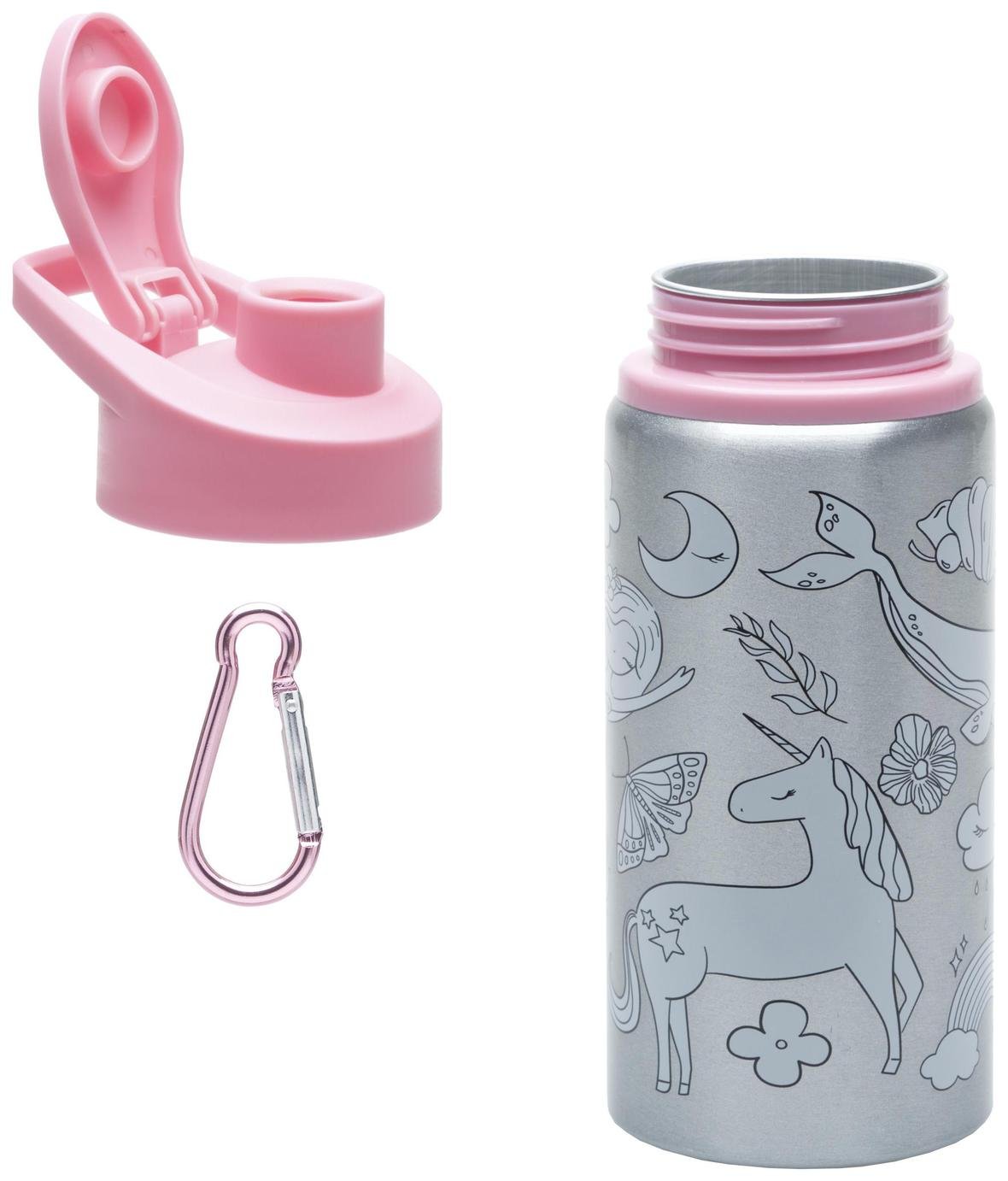 This Smash 500ml metal bottle is as unique as you are. Personalize it with stickers and unleash your creativity with 10 vibrant colored markers. Its flip-top lid with a convenient handle and carabiner ensures easy portability wherever your adventures take you. Stay hydrated in style with this customizable and practical essential.