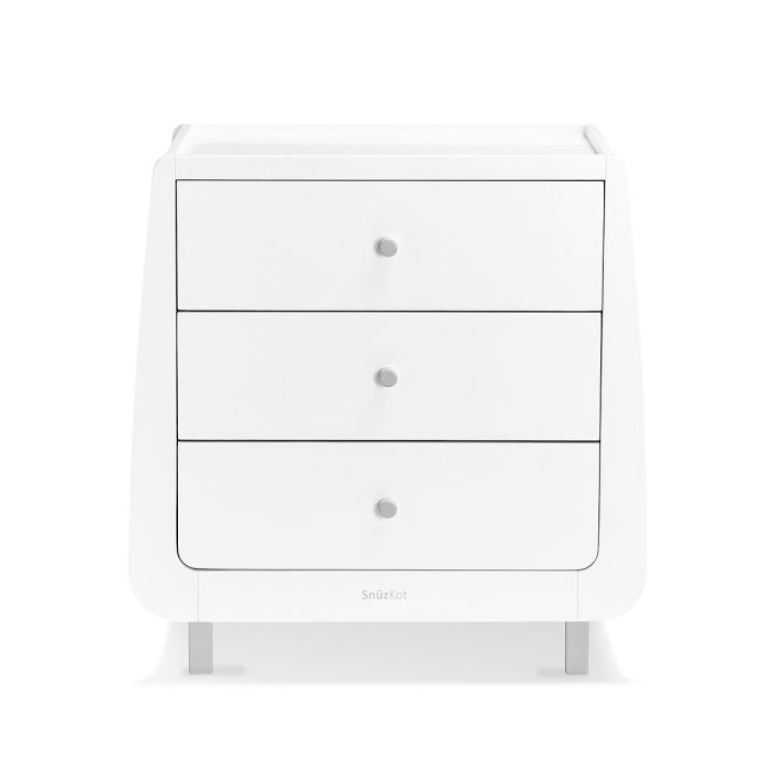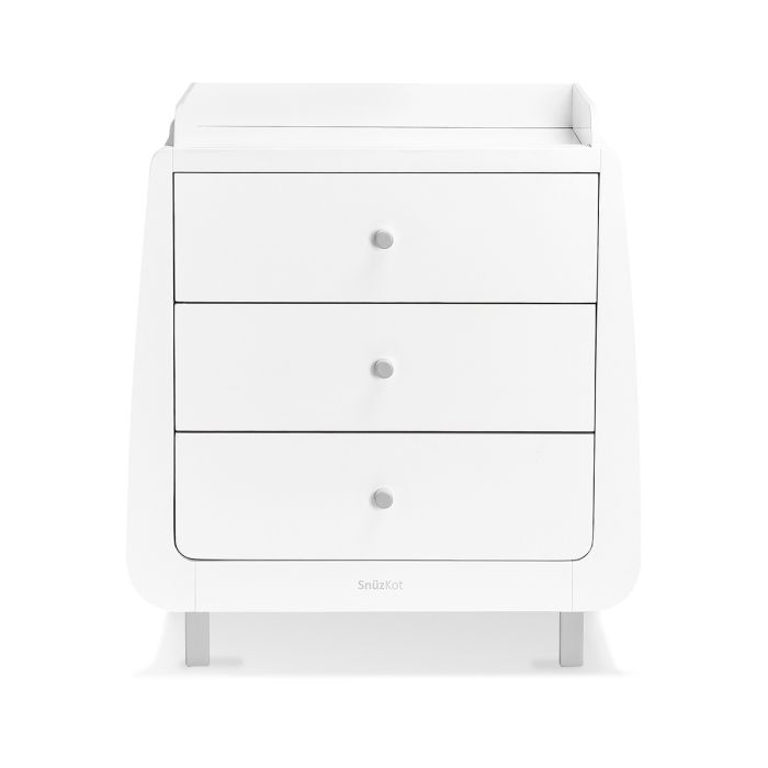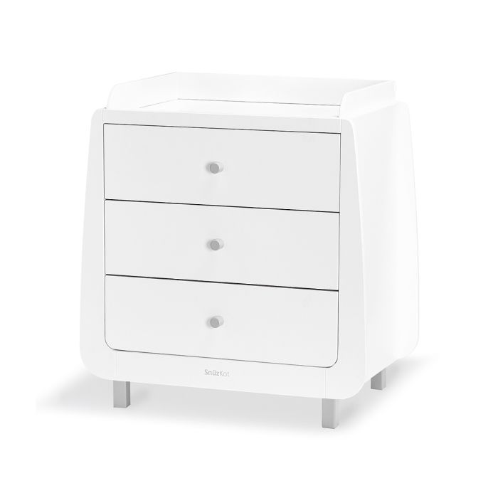 The changing unit co-ordinates perfectly with the SnuzKot cot bed to create a stylish nursery, Offers three spacious drawers and a useful changing area with a removable frame, ideal for when baby becomes a toddler and they need a standalone dresser
