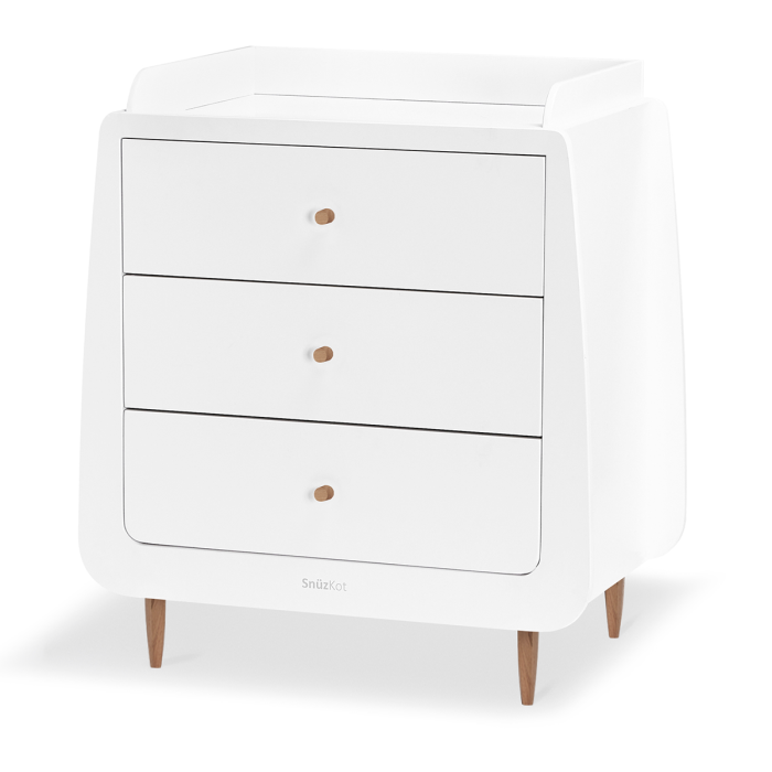 The changing unit co-ordinates perfectly with the SnuzKot cot bed to create a stylish nursery, Offers three spacious drawers and a useful changing area with a removable frame, ideal for when baby becomes a toddler and they need a standalone dresser